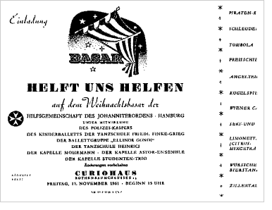 Dank hervorragender Referenten wurden insbesondere die Vorträge von allen Mitgliedern gern aufgesucht. Der Einwerbung von finanziellen Mitteln dienten Wohltätigkeitskonzerte. Das erste fand am 14.11.1950 mit namhaften Künstlern wie Maria v. Ilosway statt. Zur wichtigsten Einnahmequelle entwickelten sich die Wohltätigkeitsbasare, die großen Anklang fanden. Der erste wurde im Herbst 1952 veranstaltet. So konnten in Verbindung von Spendenaufrufen u.a. die Mittel angespart und aufgebracht werden, die für den Bau und die Einrichtung einer Altenwohnanlage erforderlich waren. Es wurde eine Stiftung gegründet, die nach dem langjährigen Vorsitzenden Eckhard v.Estorff benannt und Träger des Hauses ist. Ende 1950 hatte die Hilfsgemeinschaft 250 Mitglieder. Ihre Zahl sollte sich im Laufe der Jahre fast verdoppeln. Nach dem Hamburger Vorbild bildeten sich Hilfsgemeinschaften in Göttingen, Düsseldorf, Braunschweig usw. Anfang 1952 erteilte der Herrenmeister Oskar Prinz von Preußen den Kommendatoren im Raum der Bundesrepublik und West-Berlin den Auftrag, Johanniter-Hilfsgemeinschaften zu gründen. Von der Ordensregierung wurde eine Satzung erstellt. Sie war für alle Hilfsgemeinschaften verbindlich. Die Satzung wurde in Hamburg am 28.1.1952 übernommen. Der Herrenmeister Oskar Prinz von Preußen nahm dies zum Anlass, an die Hamburger Hilfsgemeinschaft nachstehendes, auszugsweise wiedergegebenes Handschreiben zu richten: "Hannover, d. 27.1.52... RR Heinz Gragert, ehem.Vorsitzender